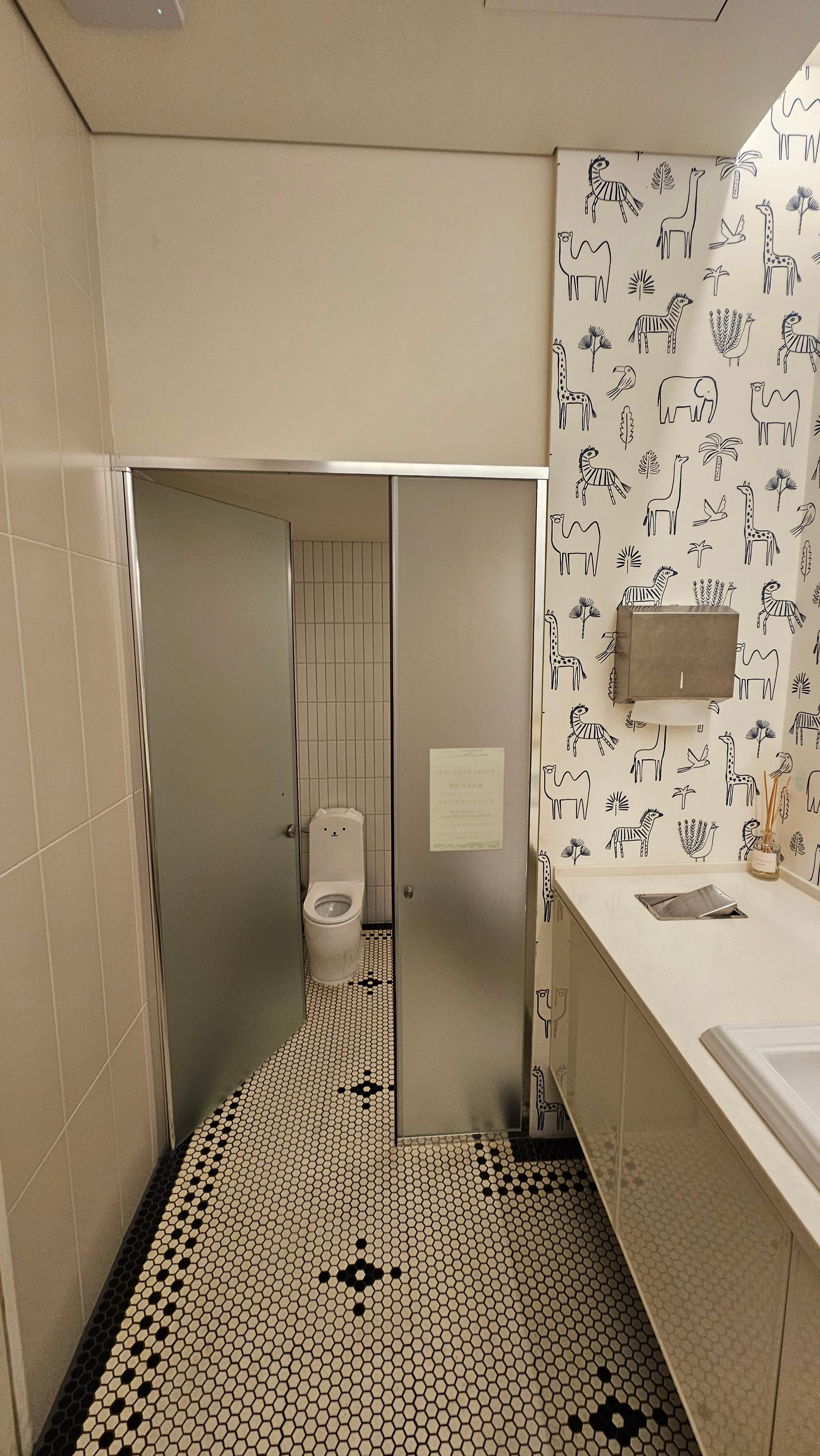 특히 좋았던 건 일반존도 아이랑 함께 이용하기에 크게 불편하지 않았다는 점이에요. 화장실 세면대가 넓고 깔끔하게 되어 있어서 팬티형 기저귀만 착용한 아이라면 굳이 키즈존이 아니어도 충분히 이용할 수 있더라구요.